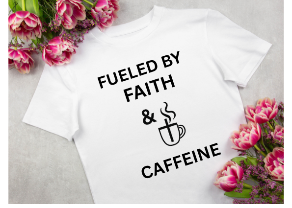 This “Fueled By Faith & Caffeine” design is perfect for believers who know that prayer and coffee make the perfect daily blend. Whether you’re hustling at work, running errands, or heading to Bible study, this design will remind you that God’s strength + caffeine = unstoppable energy!