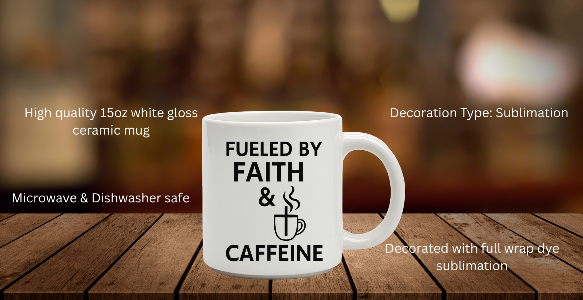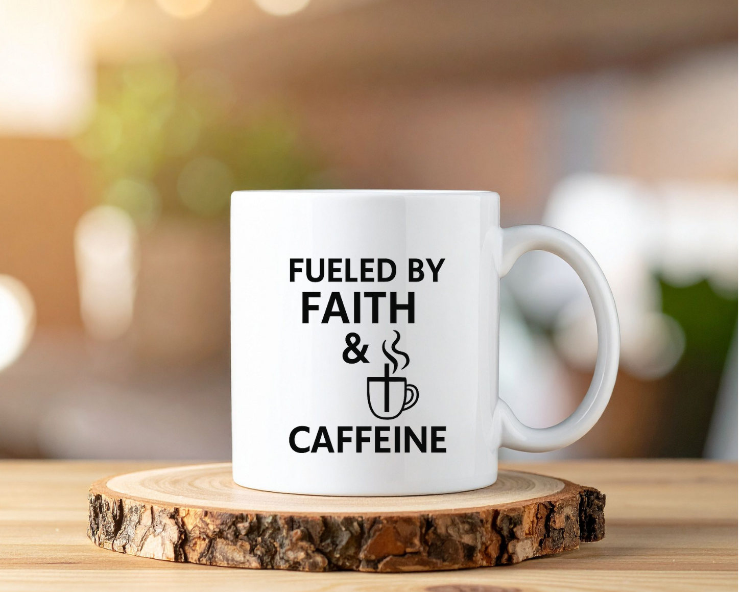 Fueled By Faith & Caffeine White Coffee Cup ,Mug