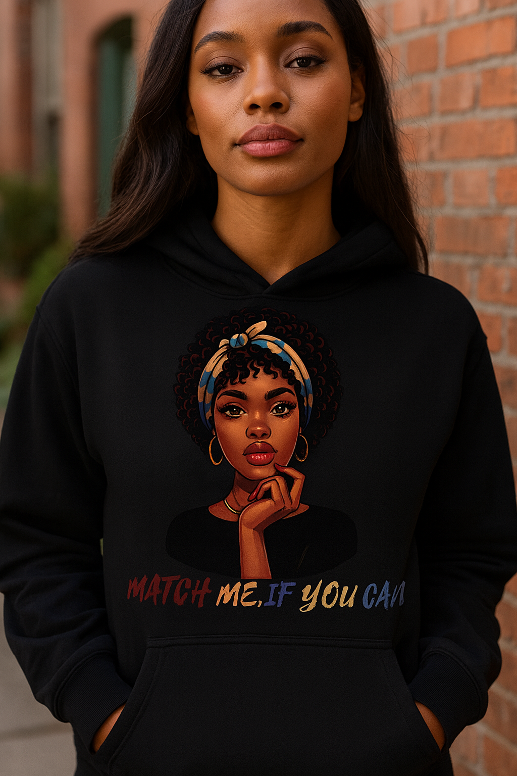 This hoodie features a striking illustrated woman paired with the empowering phrase “Match Me If You Can.” Designed for confidence, attitude, and everyday style, it’s perfect for women who know their worth and move accordingly.