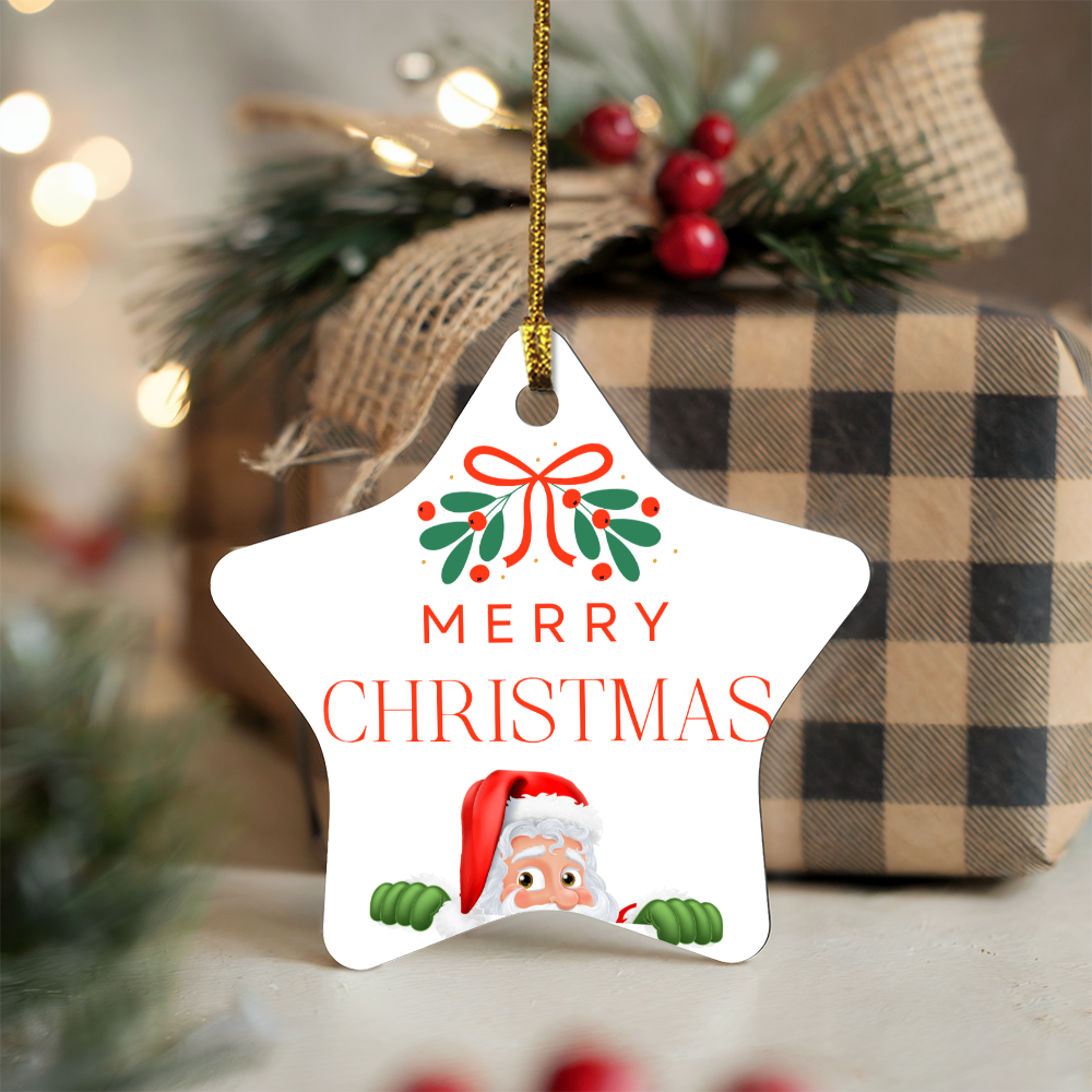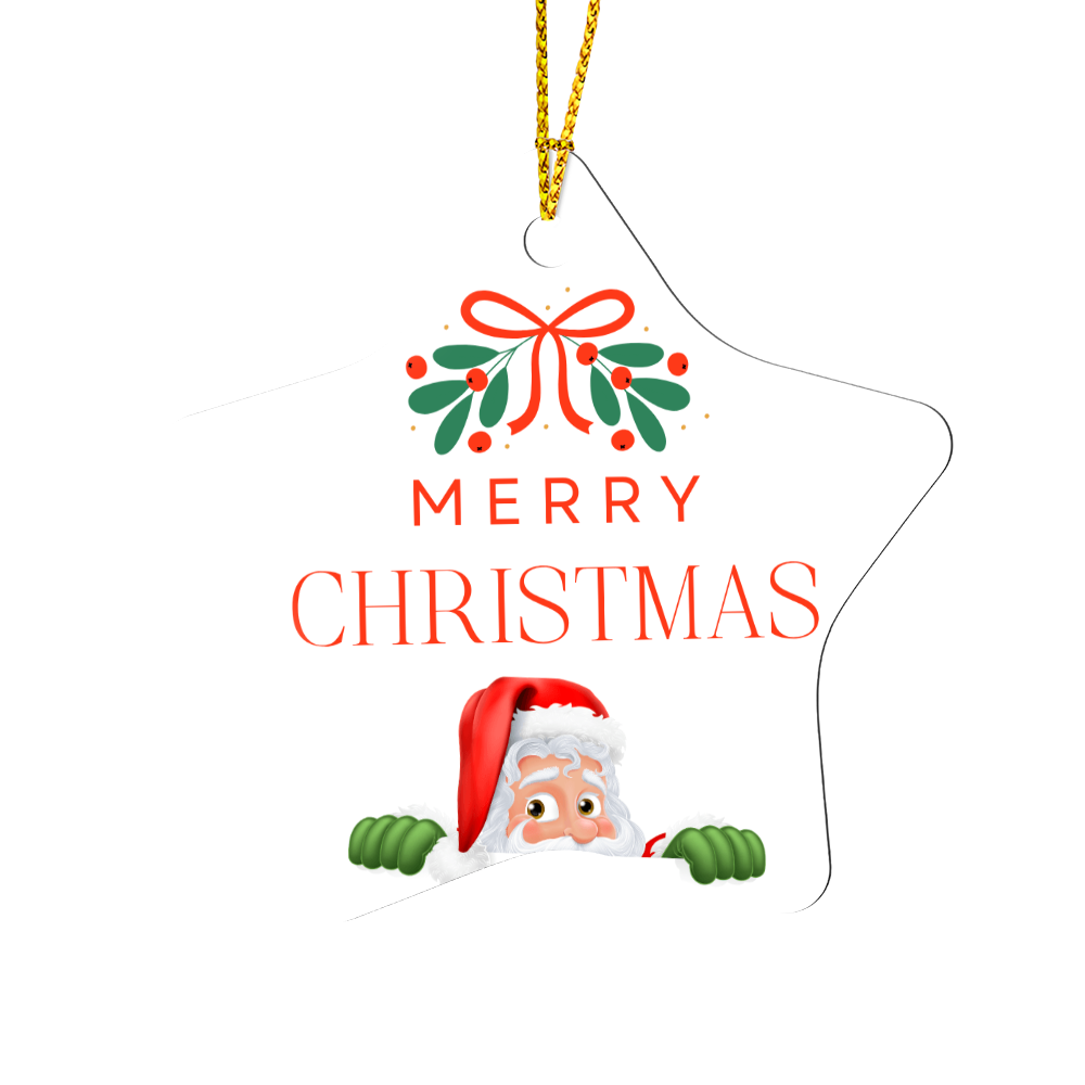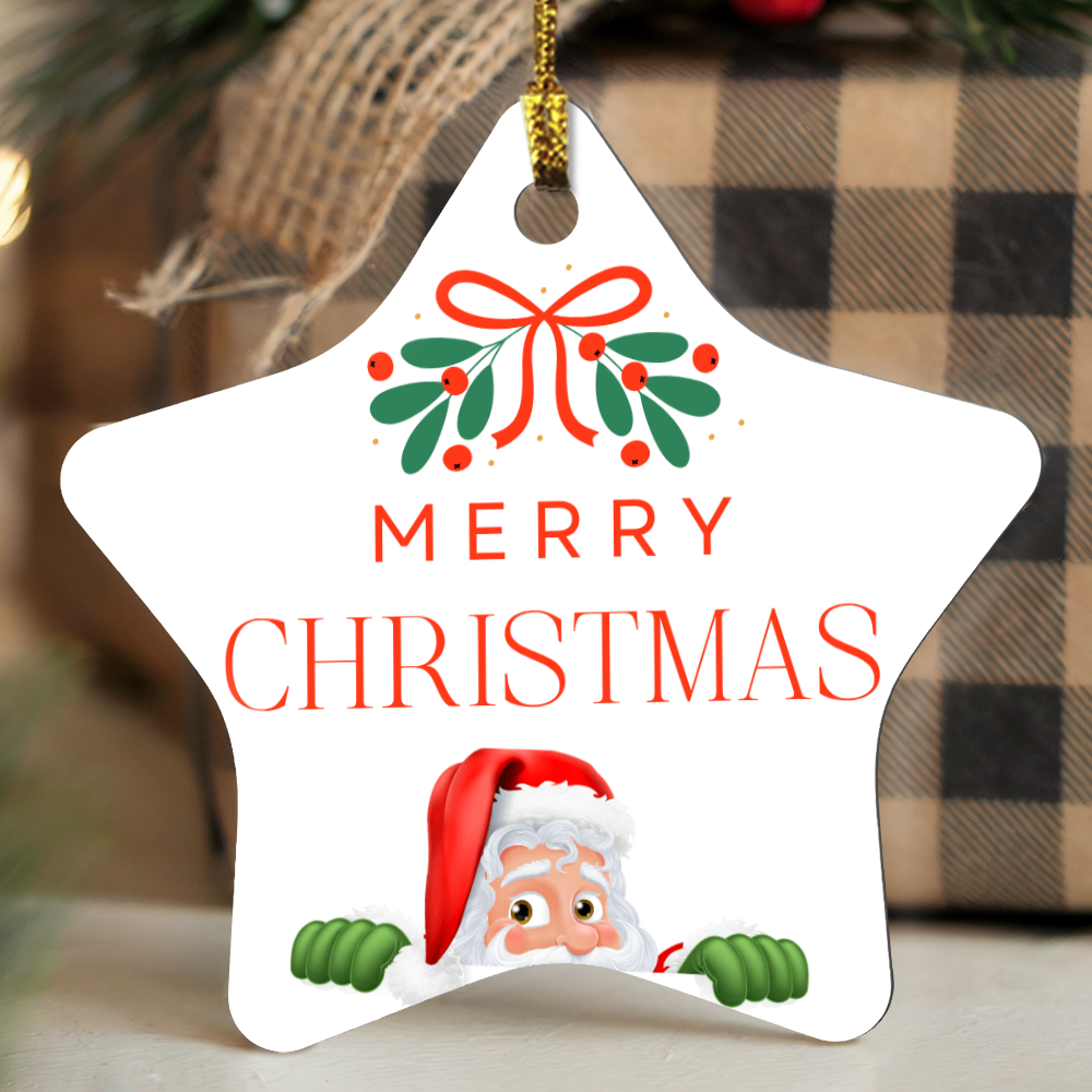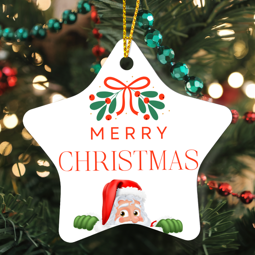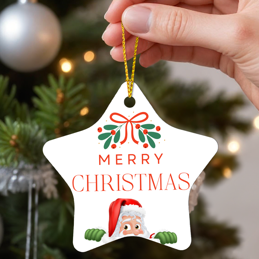 Merry Christmas Star Ornament – Santa Hanging from Star | Cute Holiday Tree Decoration