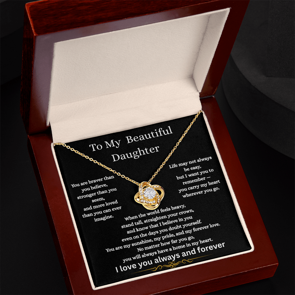 “To My Beautiful Daughter – You Are Braver, Stronger & More Loved Than You Know | Heart Necklace Gift from Mom | I Love You Forever”