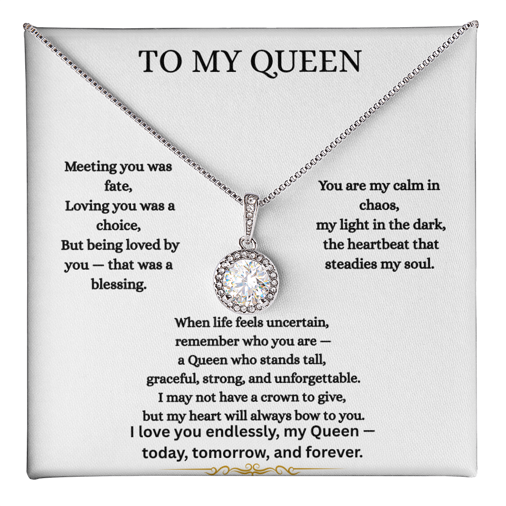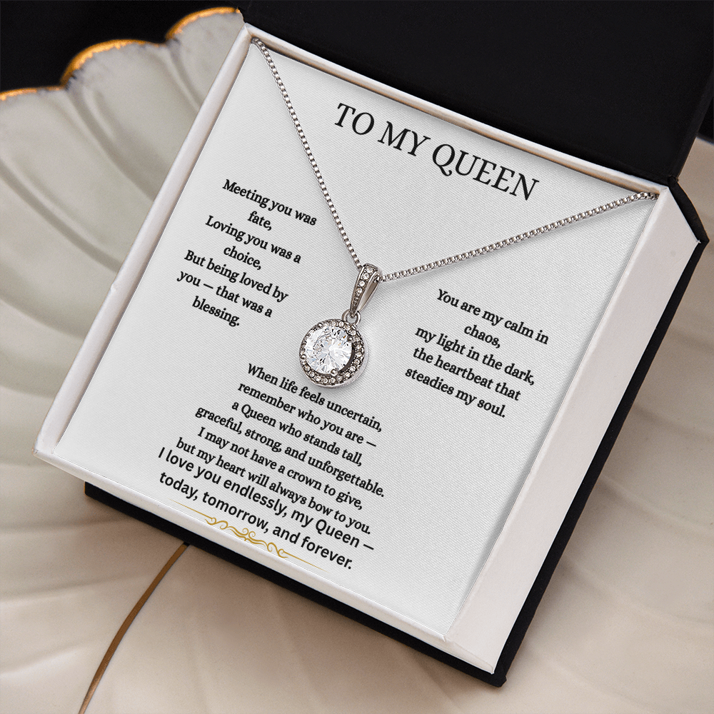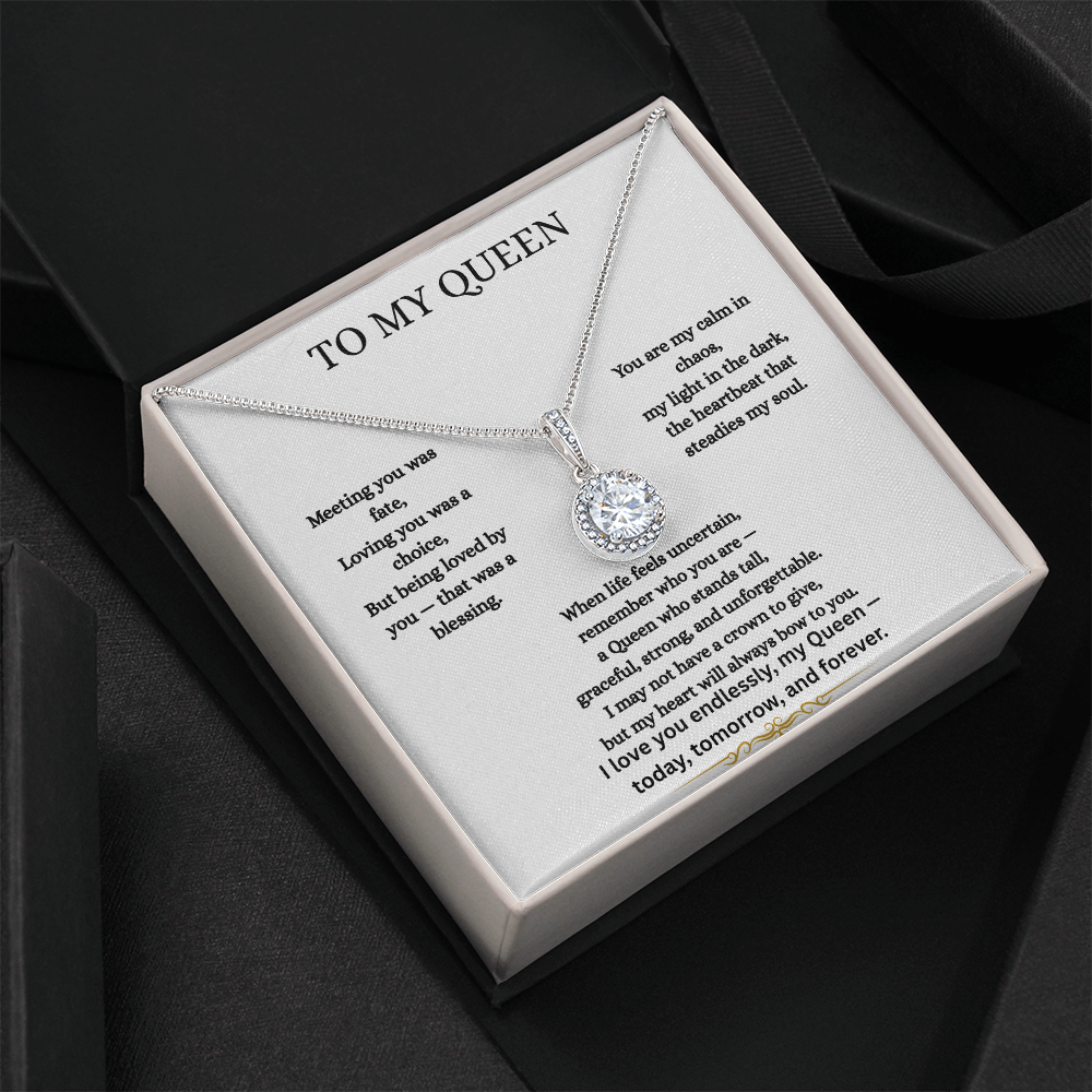 To My Queen – You Are My Forever | Romantic Heart Necklace Gift for Wife or Girlfriend | Message Card Jewelry Box for Her