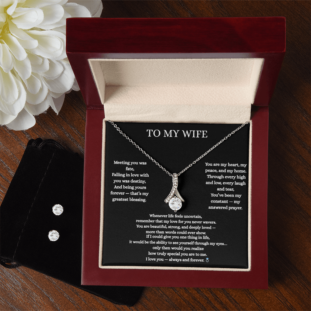 To My Wife – You Are My Heart, My Peace, My Home | Romantic Necklace Gift Box with Love Message Card