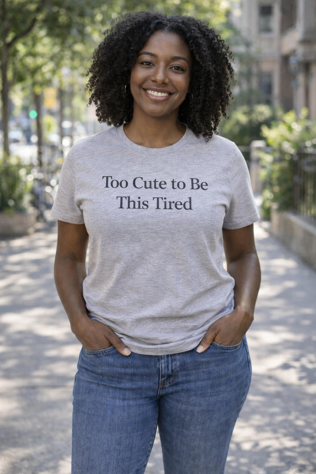 Too Cute to Be This Tired Shirt – Funny Relatable Graphic Tee for Burnt Out Adults