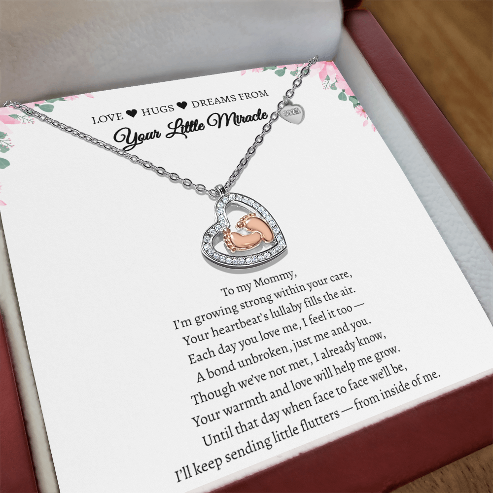 Your Little Miracle - Mom-to-Be Necklace Gift | Baby Bump Keepsake | Heartfelt Poem Card for Expecting Mother